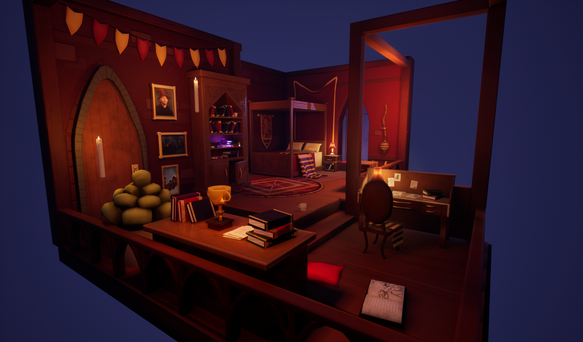 "Gryffindor Bedroom" Original Concept by @ALPAGA2 on DeviantArt